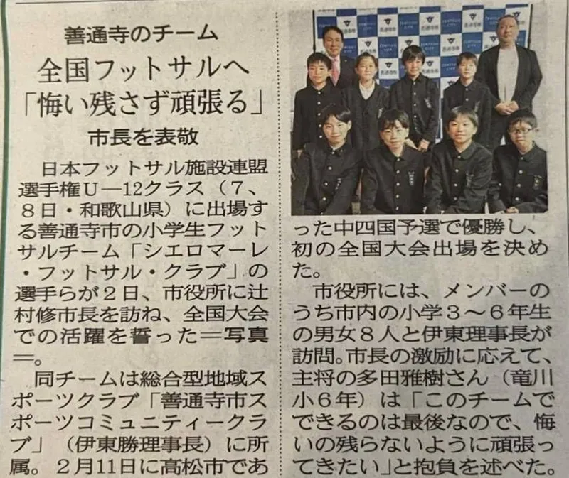 📰優勝報告に善通寺市長を表敬訪問し四国新聞に掲載されました📰