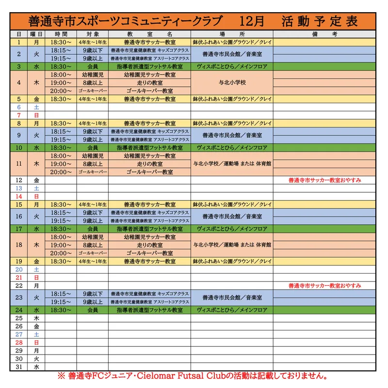 ⚠️12日(金)は、善通寺FCジュニア翌日会場準備の為お休み