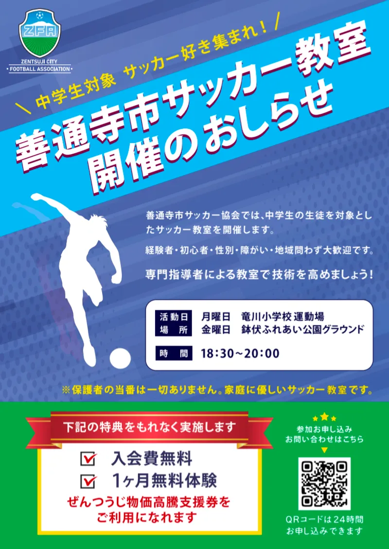 【新設 善通寺市サッカー教室(中学生クラス)チラシ配布について】